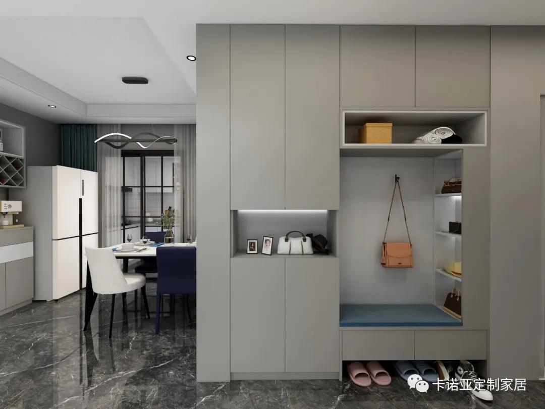 加入“俄羅斯方塊”造型的入戶柜將設(shè)計(jì)巧思隱于線面的細(xì)節(jié)里美觀方便的同時(shí)還具備超強(qiáng)收納功能懸空的設(shè)計(jì),開放式收納格