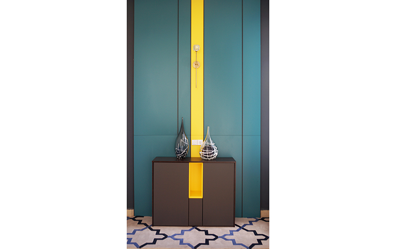 整堵護(hù)墻板以天湖藍(lán)為主色調(diào),活力橙點(diǎn)綴其間,采用創(chuàng)意的混搭撞色設(shè)計(jì),瞬間點(diǎn)亮了墻面的活力與視覺沖擊力。