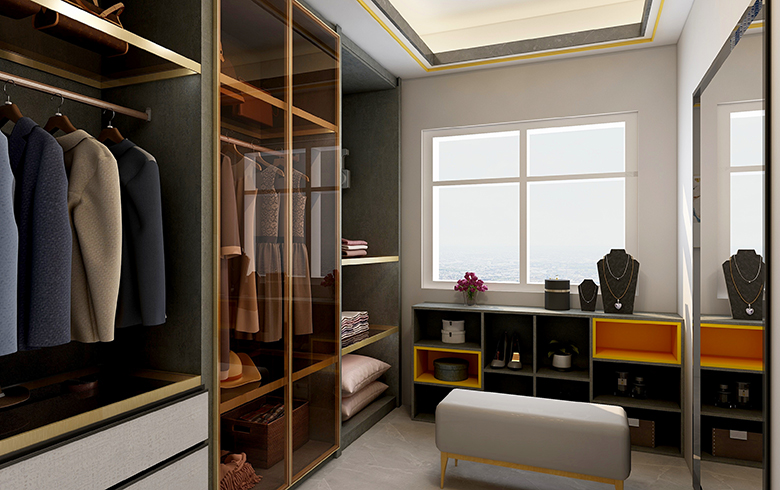 房屋空間四室兩廳兩衛(wèi),套內(nèi)面積111平米,四室分別是主臥,次臥(榻榻米),書房,衣帽間,滿足了三口之家的日常使用需求,使空間利用率達(dá)到最大化。全屋柜體采用深色板材,運(yùn)用玻璃門和淺色門板配金色拉手,通過棚線和家具顏色的搭配來達(dá)到風(fēng)格統(tǒng)一,打造輕奢風(fēng)格。客餐廳通過金色家具和軟裝,淺色的壁紙,體現(xiàn)溫馨的氛圍。
