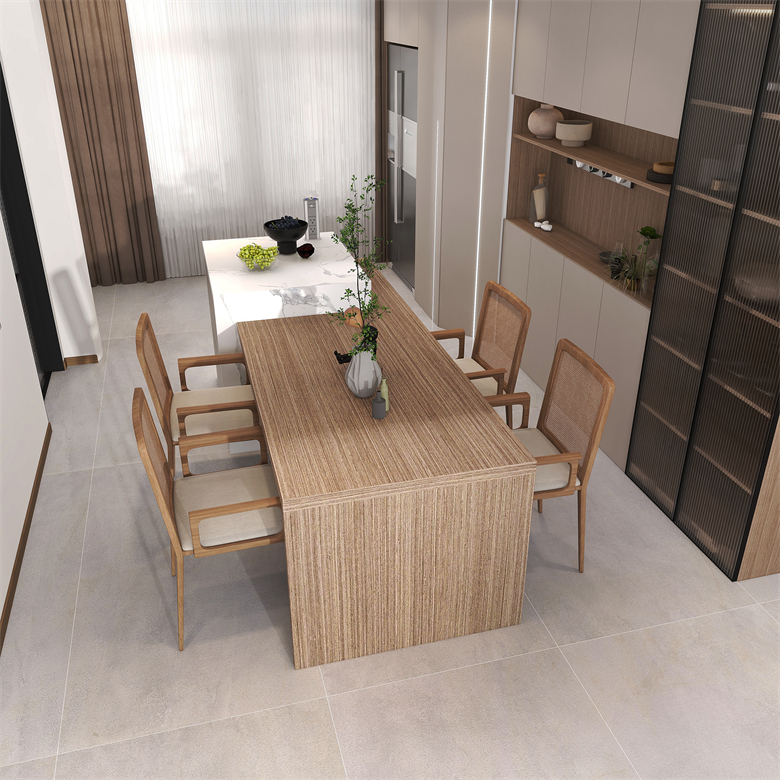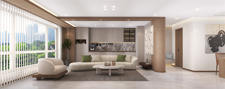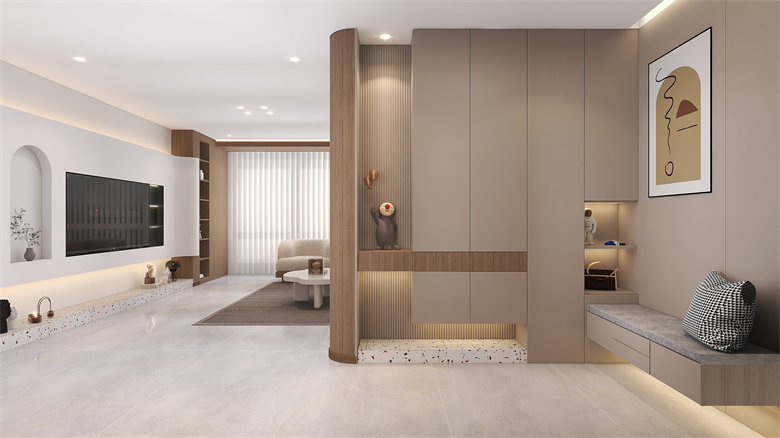 本案設(shè)計(jì),保留了原戶型的大部分結(jié)構(gòu),甄選業(yè)主鐘愛的深調(diào)木飾面表達(dá)空間敘事。整體空間穩(wěn)重大氣又不會(huì)感覺沉悶壓抑,渲染木元素的自然性,捕捉光影變幻的印記,沉淀溫馨愜意的氛圍。與業(yè)主密切的溝通中,我更加深入了解一家三口不同的喜好與需求,通過進(jìn)一步的梳理,以“家”為中心點(diǎn),構(gòu)建一個(gè)情感共存之所。
