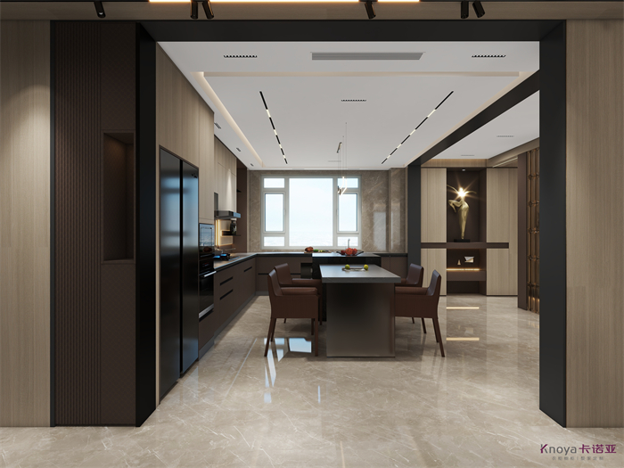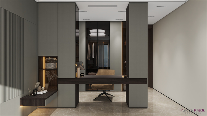 意式極簡(jiǎn)既具有意大利文藝復(fù)興時(shí)期的意蘊(yùn),奢華高貴,同時(shí)又兼具現(xiàn)代感的干練高級(jí),深棕色的木飾面搭配原木色穿插營(yíng)造的高級(jí)感貫穿整個(gè)空間,利用材質(zhì)的對(duì)比與反差加強(qiáng)空間的質(zhì)感感受。優(yōu)雅與深邃的配色讓空間散發(fā)出靜謐感,簡(jiǎn)約的線條在訴說(shuō)永恒的經(jīng)典,脫離一切的浮華與煩躁。身居清雅地,心無(wú)車馬喧,從生活的本質(zhì)出發(fā),讓它靜下來(lái),感受快節(jié)奏都市生活背后的安靜與寧?kù)o。