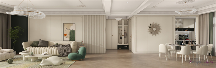 輕法式的氛圍感,藏不住的浪漫和溫馨。生活的浪漫,從家開始。螺青和奶貝顏色的強烈碰撞,盡顯靈動,浪漫而溫馨。對比色的反差并沒有很突兀的感覺,反而多了一點復(fù)古優(yōu)雅的氣息。在這個家里的每處角落都成為風(fēng)景,盡享平和時光,細品生活的美好。仿佛置身夢境之中。當(dāng)兼具著溫馨浪漫與藝術(shù)基因的法式風(fēng)格邂逅家居空間,帶來令人羨慕的精致品味--優(yōu)雅,溫馨,時尚,高端,生活被演繹的像詩一樣優(yōu)美。