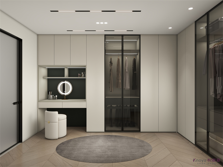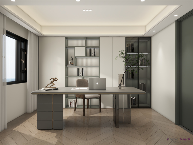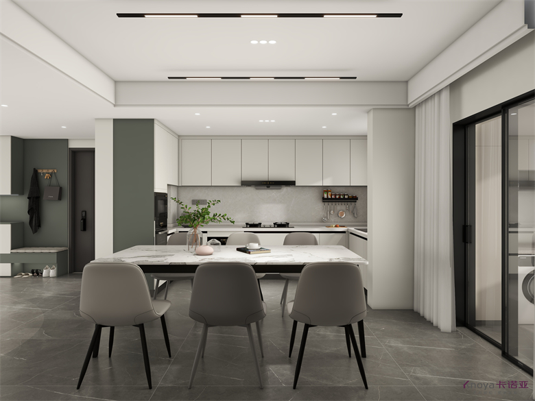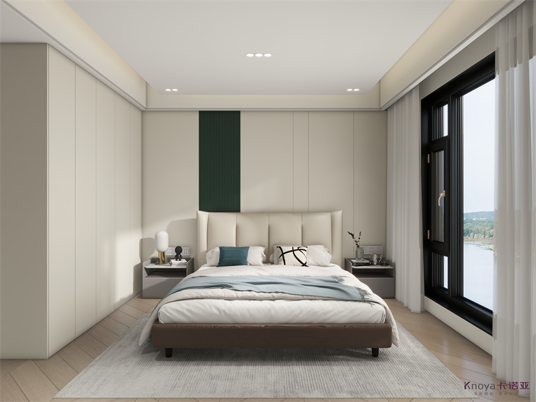 作品介紹:空間以簡潔明快的淺色為主,無主燈的設(shè)計,極簡中又不失淡雅,呈現(xiàn)明亮干凈的美,再用小面積輔以明亮的色彩,凸顯出空間層次??蛷d的亮點(diǎn)在于電視背景墻,底下鏤空的設(shè)計比較少見,電視背景墻后面便是休閑區(qū),收納柜和鞋柜銜接形成一個整體。餐邊柜和入戶玄關(guān)銜接,入門即是風(fēng)景。開放式廚房和餐廳,讓空間看上去更加寬敞。主臥青綠色點(diǎn)綴,增加層次,衣帽間梳妝臺一體,L型衣帽間將空間分成兩塊,避免了衛(wèi)生間對著床的現(xiàn)象。次臥陽臺休閑區(qū),有著一整面的收納柜,可以看書,也可以娛樂。床背景上下分段,加上燈帶增添氛圍感。書房鏤空玻璃門木門虛實(shí)結(jié)合。