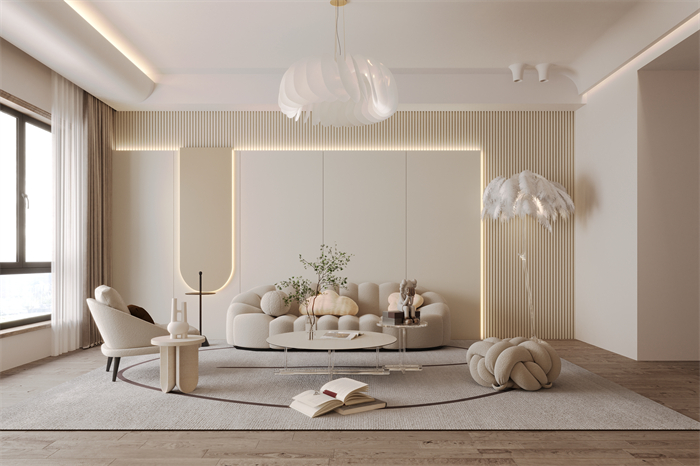 “Cream-coloured”奶油色,介于白色和奶咖色之間,屬于一種低飽和度的駝色系。相比純白,多了一分醇厚;比起奶咖,少了一分濃烈,色彩充滿(mǎn)輕甜感,清清淡淡之間呈現(xiàn)軟糯的溫柔質(zhì)感,散發(fā)優(yōu)雅恬靜的空間魅力。