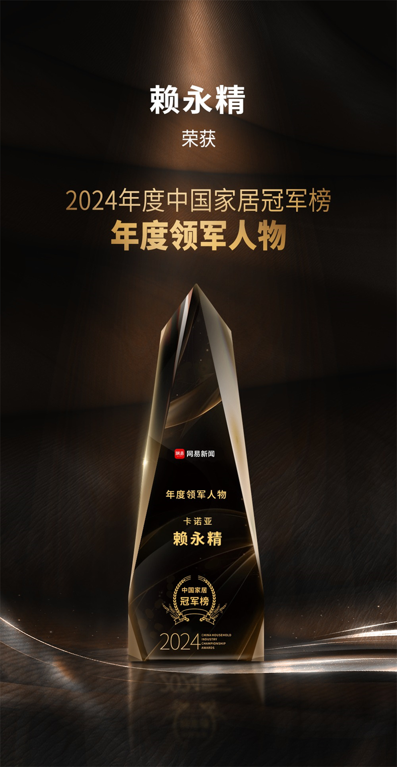 2月10日,網(wǎng)易“2024年度中國家居冠軍榜”重磅發(fā)布,以榮譽致敬榜樣,匯聚行業(yè)力量,助力家居產(chǎn)業(yè)蓬勃發(fā)展??ㄖZ亞憑借引領(lǐng)行業(yè)創(chuàng)變的輕高定品牌影響力及差異化的臥室系統(tǒng),從眾多品牌中脫穎而出,榮膺“匠心質(zhì)造品牌”獎項,以雄厚品牌勢能,助力推動美好生活方式定制。同時,卡諾亞董事兼副總裁賴永精以其對行業(yè)的卓越貢獻,榮獲“年度領(lǐng)軍人物”稱號。