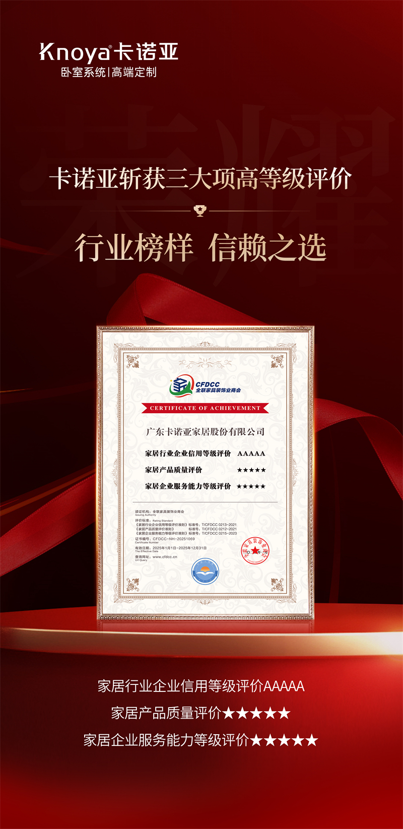 近日,全聯(lián)家具裝飾業(yè)商會(huì)公布家居行業(yè)企業(yè)相關(guān)評(píng)價(jià)結(jié)果,廣東卡諾亞家居股份有限公司憑借在信用建設(shè)、產(chǎn)品質(zhì)量與服務(wù)能力的綜合優(yōu)勢(shì),一舉斬獲家居行業(yè)企業(yè)信用等級(jí)評(píng)價(jià)AAAAA、家居產(chǎn)品質(zhì)量評(píng)價(jià)★★★★★、家居企業(yè)服務(wù)能力等級(jí)評(píng)價(jià)★★★★★三項(xiàng)高等級(jí)評(píng)價(jià)認(rèn)證,進(jìn)一步佐證了卡諾亞在信用、品質(zhì)與服務(wù)層面的綜合競(jìng)爭(zhēng)實(shí)力,是消費(fèi)者的信賴(lài)之選。