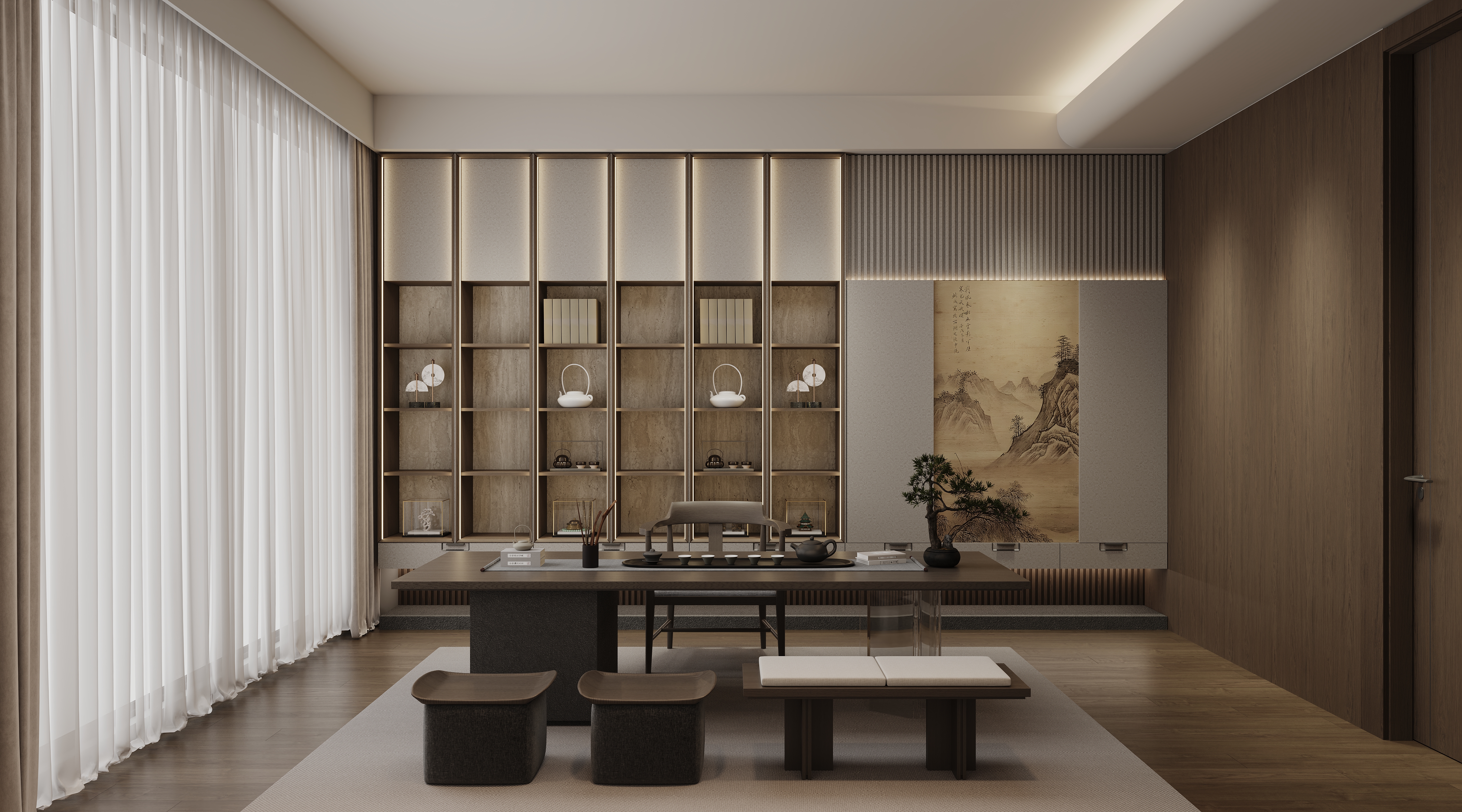 墨箋系列溯源宋代“雅集四藝”,以“簡(jiǎn)雅、留白、意境”為核心設(shè)計(jì)元素。經(jīng)典回紋拉手復(fù)刻宋式雅韻,云箋白、清秋胡桃等素凈色調(diào)如水墨入畫,木質(zhì)、布藝、石紋等多種材質(zhì)混搭,凝萃“簡(jiǎn)而不陋”的空間質(zhì)感,展現(xiàn)宋代美學(xué)的當(dāng)代詮釋。