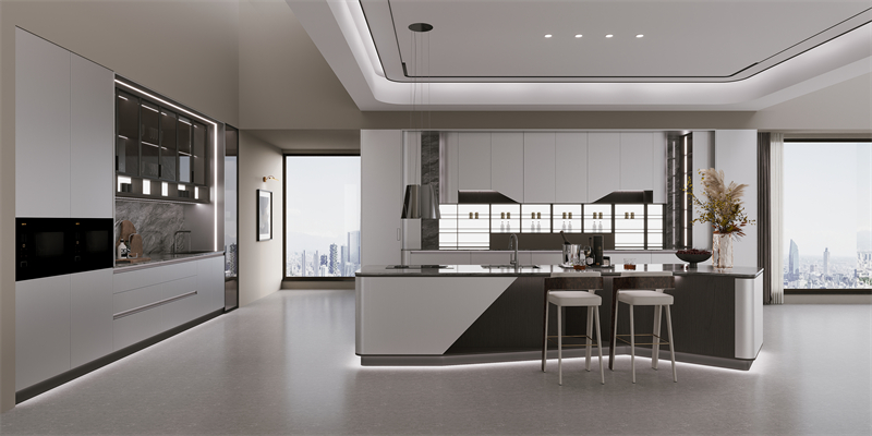 ·原創(chuàng)設(shè)計語言:源自鉆戒輪廓的門型,以戒指拉伸開的獨特輪廓融入門型設(shè)計,以左右圓弧+上下裝飾線勾勒立體層次,搭配鋅合金拉手,是功能與藝術(shù)、創(chuàng)新的完美融合;游艇造型中島臺與花瓣門板的組合,將豪華游艇的美學(xué)融入廚房空間。