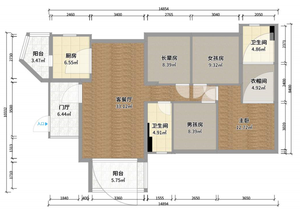 本次案例的房子朝向是東,通風(fēng)不錯,每個空間都不小。要是能好好設(shè)計(jì)一下,住50年都沒問題。