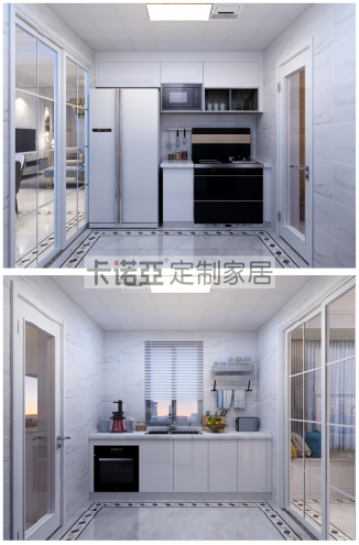 整體廚房采用白色與淺色大理石地磚搭配,波打線花片點(diǎn)綴,將整個廚房色調(diào)提亮,顯得寬敞、視覺豐富,讓人愛下廚。