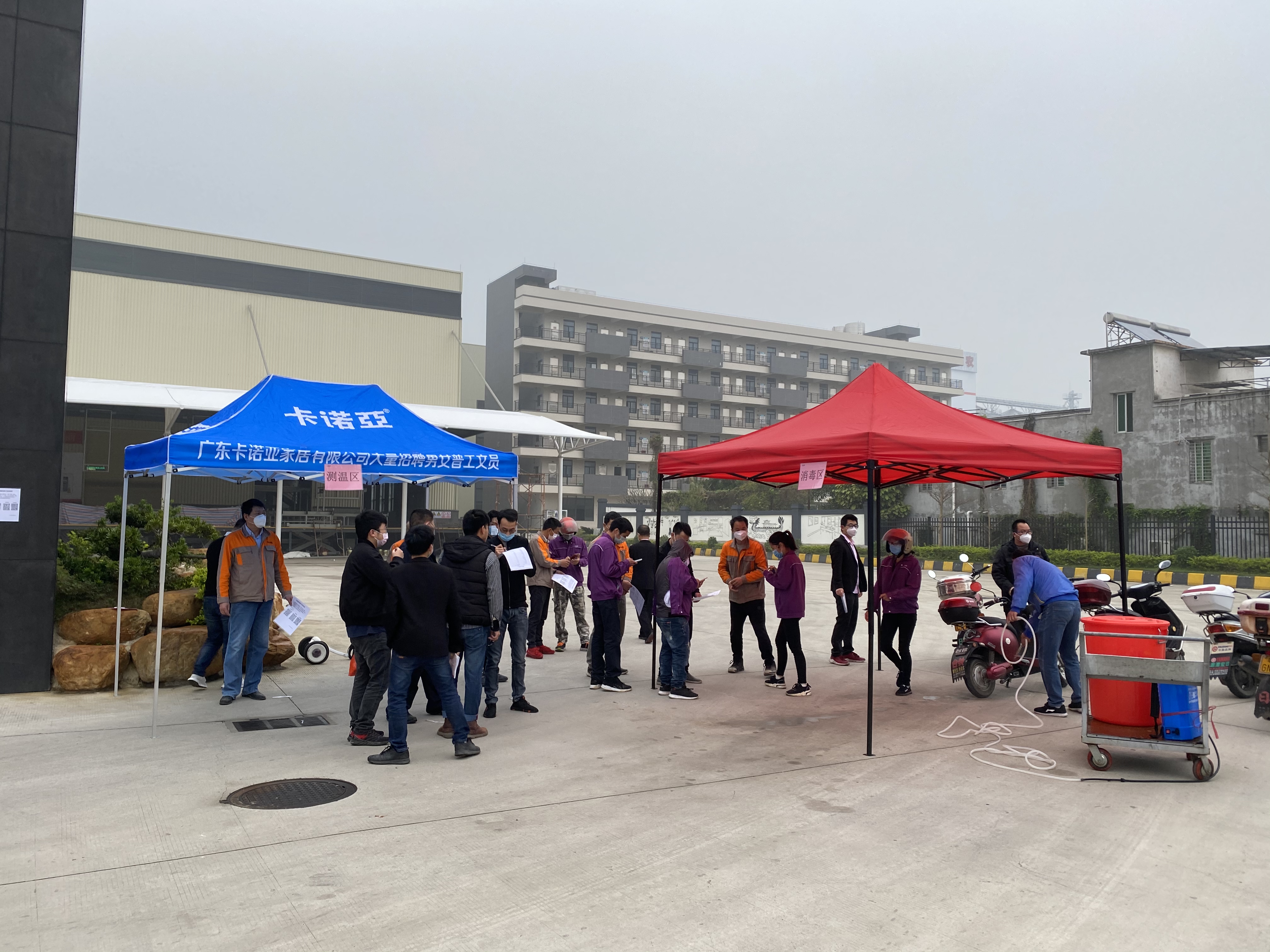 2020年伊始,一場突如其來的新型冠狀病毒肺炎疫情打破了原本祥和安寧、家人溫馨團(tuán)聚的春節(jié)假期。疫情當(dāng)前,崗位就是戰(zhàn)場,防控就是責(zé)任。疫情防控關(guān)乎生命,復(fù)工復(fù)產(chǎn)關(guān)系民生,兩者關(guān)系緊密、缺一不可??ㄖZ亞響應(yīng)國家號召,立足于一手抓實(shí)疫情防控,一手抓緊復(fù)工復(fù)產(chǎn),經(jīng)董事會(huì)決議,公司申請、政府批準(zhǔn),卡諾亞廣州花都及清遠(yuǎn)兩大智造基地于3月9日正式復(fù)工。