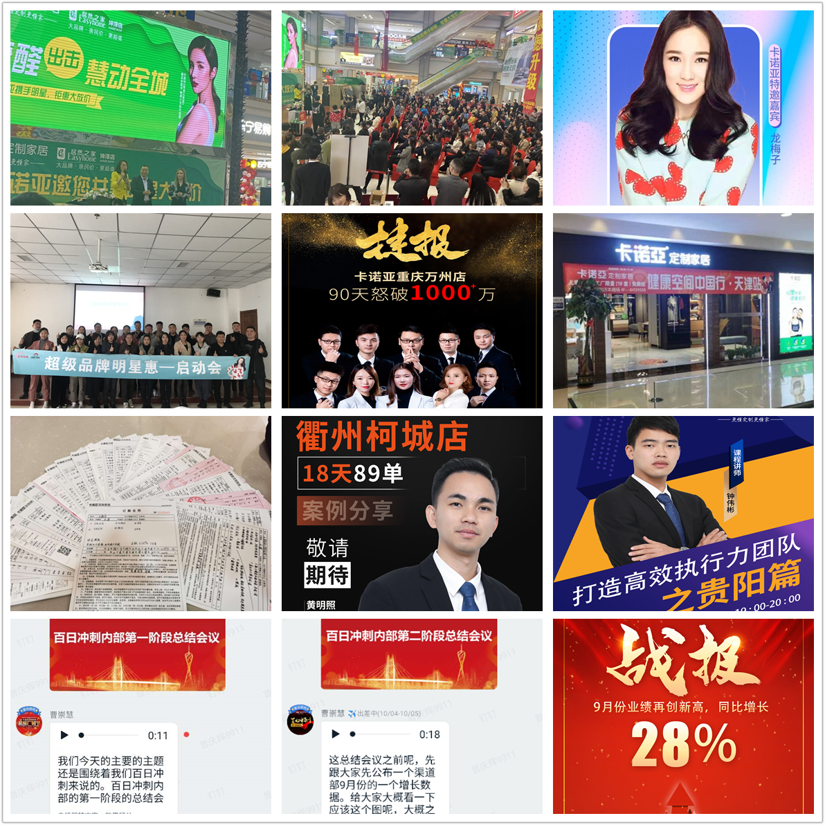 從9月初至11月底百日沖刺收尾之際,近100天時間里,卡諾亞經(jīng)銷商在面對2020年嚴(yán)峻市場的不利環(huán)境之下,有一批優(yōu)秀門店脫穎而出,用實際行動給出了最有力的答案!他們劈波斬浪、沖刺巔峰,實現(xiàn)終端業(yè)績的逆勢飄紅,這些優(yōu)秀的突圍者包括山西太原居然之家坤澤店、山西運(yùn)城大明宮至尊館、重慶萬州店、天津店、衢州柯城店、貴陽店等,卡諾亞及時地將這些優(yōu)秀門店的成功案例進(jìn)行總結(jié),通過線上線下廣泛傳播與分享,借鑒成功案例助力門店銷量增長,達(dá)成團(tuán)隊快速成熟,讓更多的經(jīng)銷商踏入優(yōu)秀渠道商行列。