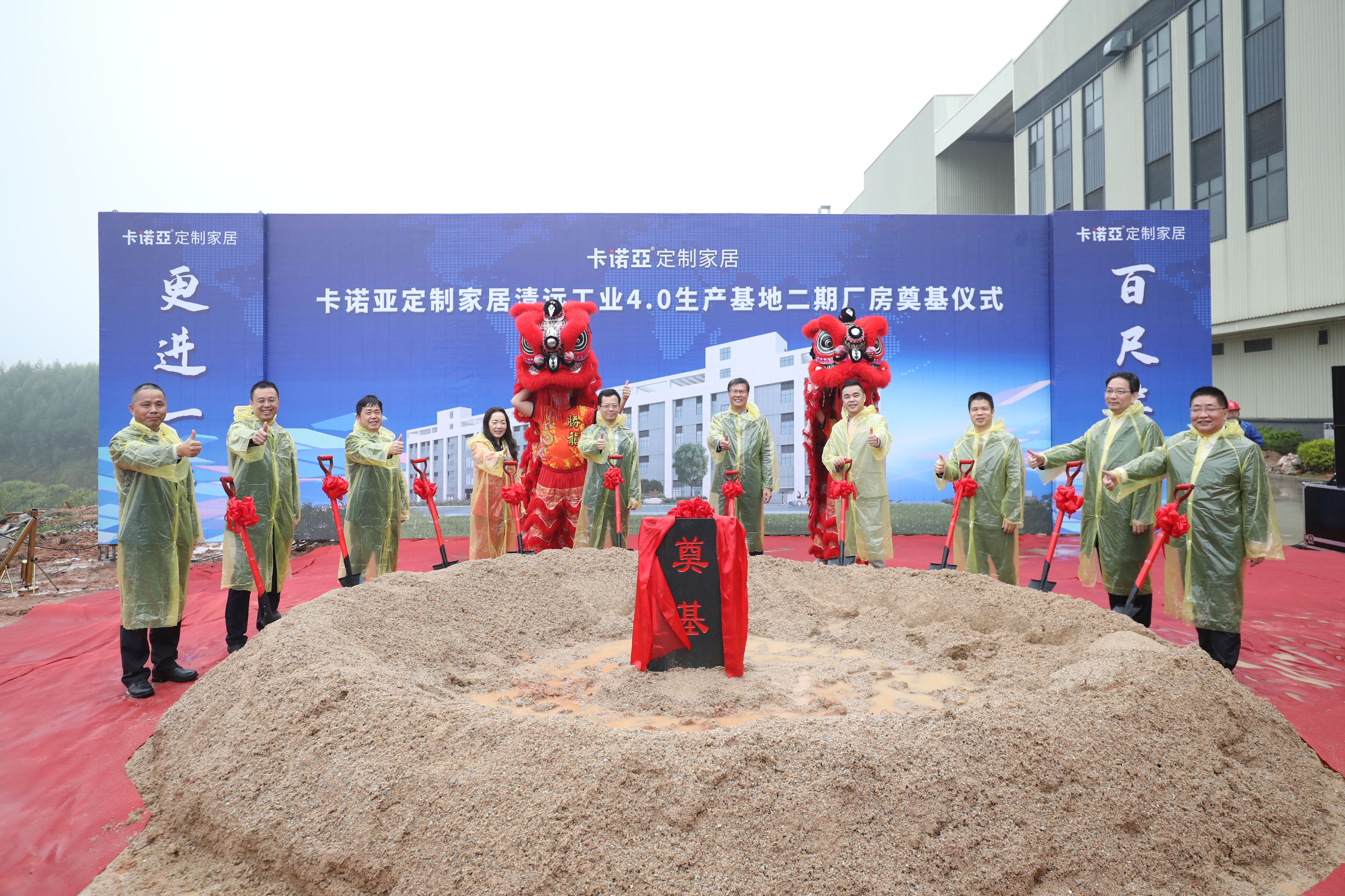 3月6日上午,以“百尺竿頭,更進一步”為主題的卡諾亞定制家居清遠工業(yè)4.0生產(chǎn)基地二期廠房奠基儀式,在清遠市清城區(qū)源潭鎮(zhèn)峽山工業(yè)園隆重舉行。卡諾亞定制家居董事長兼總裁程國標先生、執(zhí)行董事吳紹華女士、副總裁兼生產(chǎn)中心總經(jīng)理葉喜都先生、副總裁兼營銷中心總經(jīng)理賴永精先生、工程公司總經(jīng)理葉建中先生、董事會秘書萬成文先生等公司“董高監(jiān)”人員,以及當?shù)卣I導、行業(yè)協(xié)會領導、客戶代表、供應商代表、中介機構代表、媒體朋友等嘉賓參加了儀式。