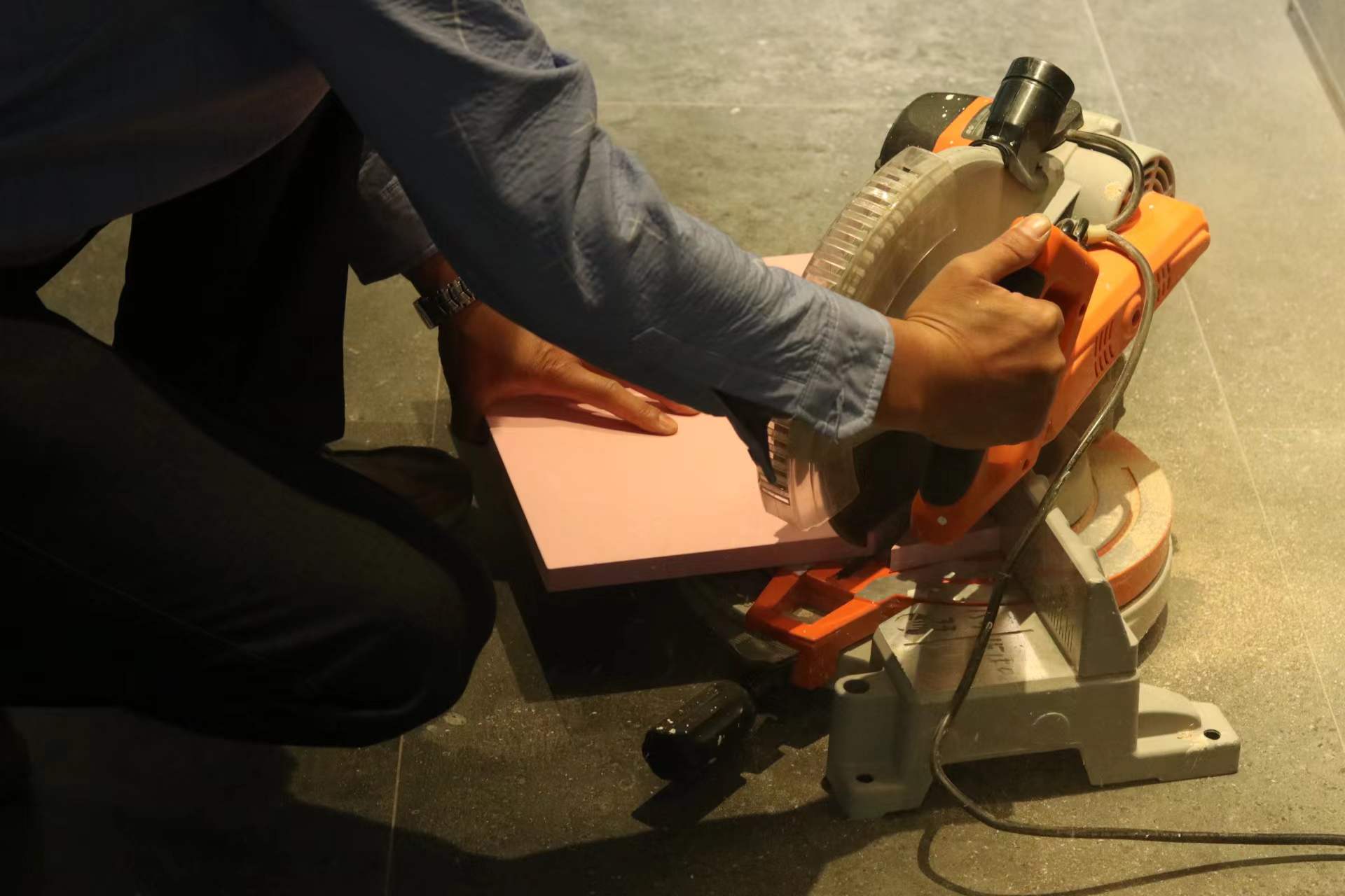 為測試康醛板的抗變形、防潮能力等,小編在現(xiàn)場進(jìn)行了多個實(shí)驗(yàn)。測評現(xiàn)場,卡諾亞工作人員取出一塊完整的康醛板,并將其切割成小塊??梢钥匆?,板材的切割口處紋理清晰,與普通顆粒板稍有不同。切割之后,板材并未釋放半點(diǎn)兒異味。