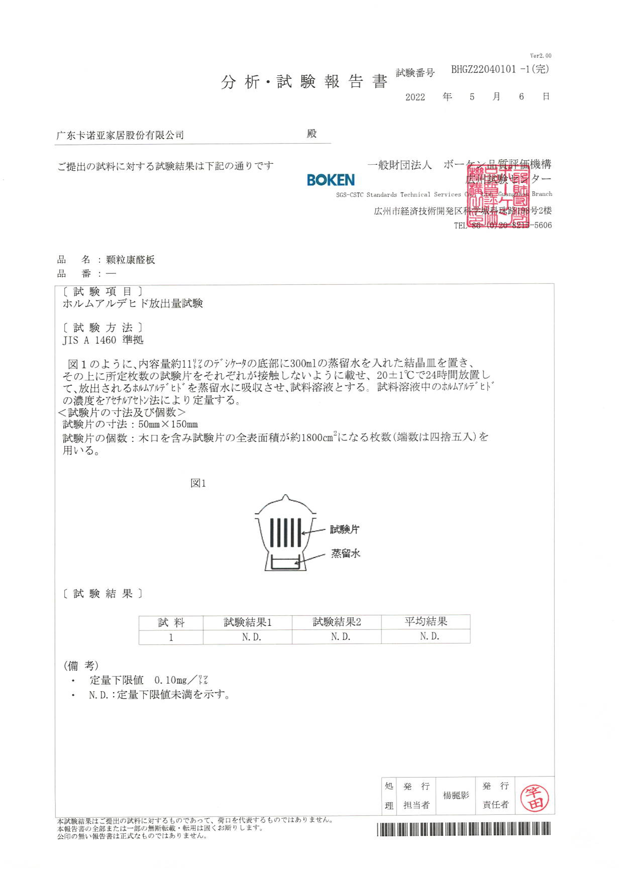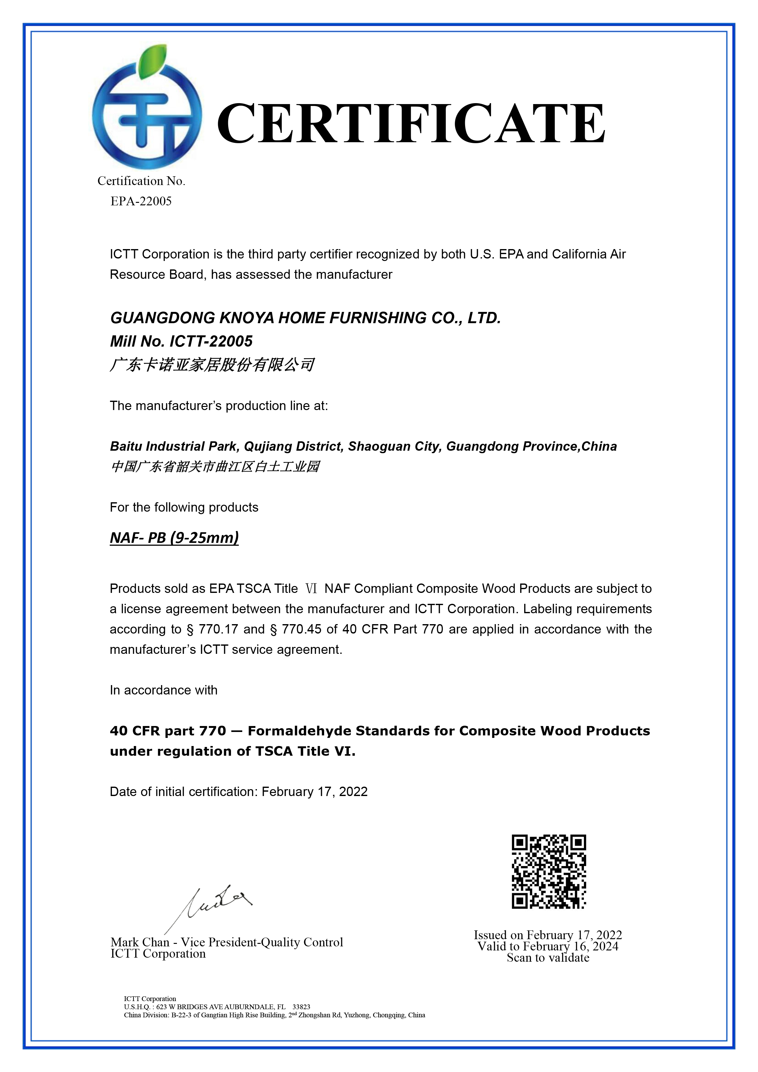 2022年3月,卡諾亞康醛板獲得全球至高級別的美國CARB-NAF無醛豁免認證、美國EPA-NAF無醛豁免認證。同年5月,卡諾亞再次突破環(huán)保標準新高度,獲得由日本國土交通省頒發(fā)的F★★★★認證證書。