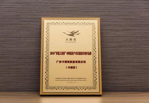 卡諾亞憑借雄厚的企業(yè)實(shí)力、強(qiáng)大的品牌影響力,從眾多家居品牌中脫穎而出,榮獲“大雁獎(jiǎng)·2018中國家居產(chǎn)業(yè)定制家居領(lǐng)軍品牌”,這既是家居業(yè)最權(quán)威機(jī)構(gòu)對(duì)卡諾亞的認(rèn)可,更是蓬勃發(fā)展的定制家居行業(yè)及廣大消費(fèi)者對(duì)卡諾亞寄予的厚望。