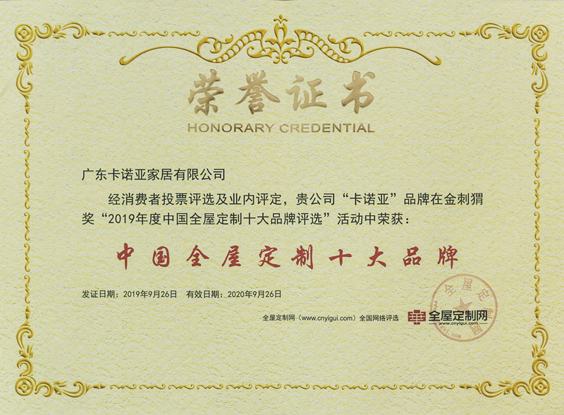 11月5日,卡諾亞榮獲金刺猬獎(jiǎng)“中國(guó)全屋定制十大品牌”及“2019中國(guó)全屋定制最具影響力十大品牌”獎(jiǎng)項(xiàng),此次評(píng)選活動(dòng)由中國(guó)建材家居行業(yè)權(quán)威媒體平臺(tái)騰王網(wǎng)絡(luò)傳媒旗下網(wǎng)站“全屋定制網(wǎng)”主辦。卡諾亞憑借專注定制家居18年的企業(yè)實(shí)力和品牌魅力,被評(píng)為“中國(guó)全屋定制十大品牌”及“2019中國(guó)全屋定制最具影響力十大品牌”獎(jiǎng)項(xiàng),創(chuàng)建于2001年、專業(yè)專注的卡諾亞獲此殊榮,可謂是實(shí)至名歸。